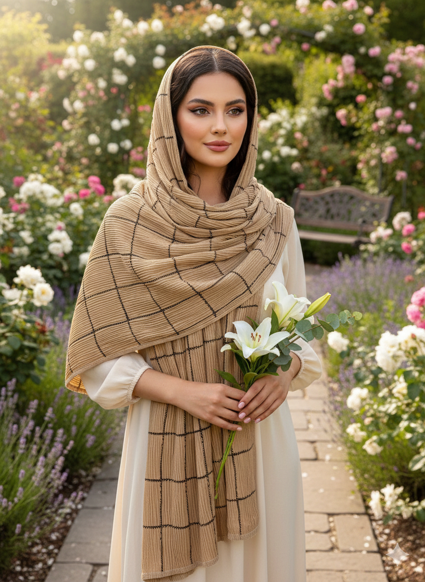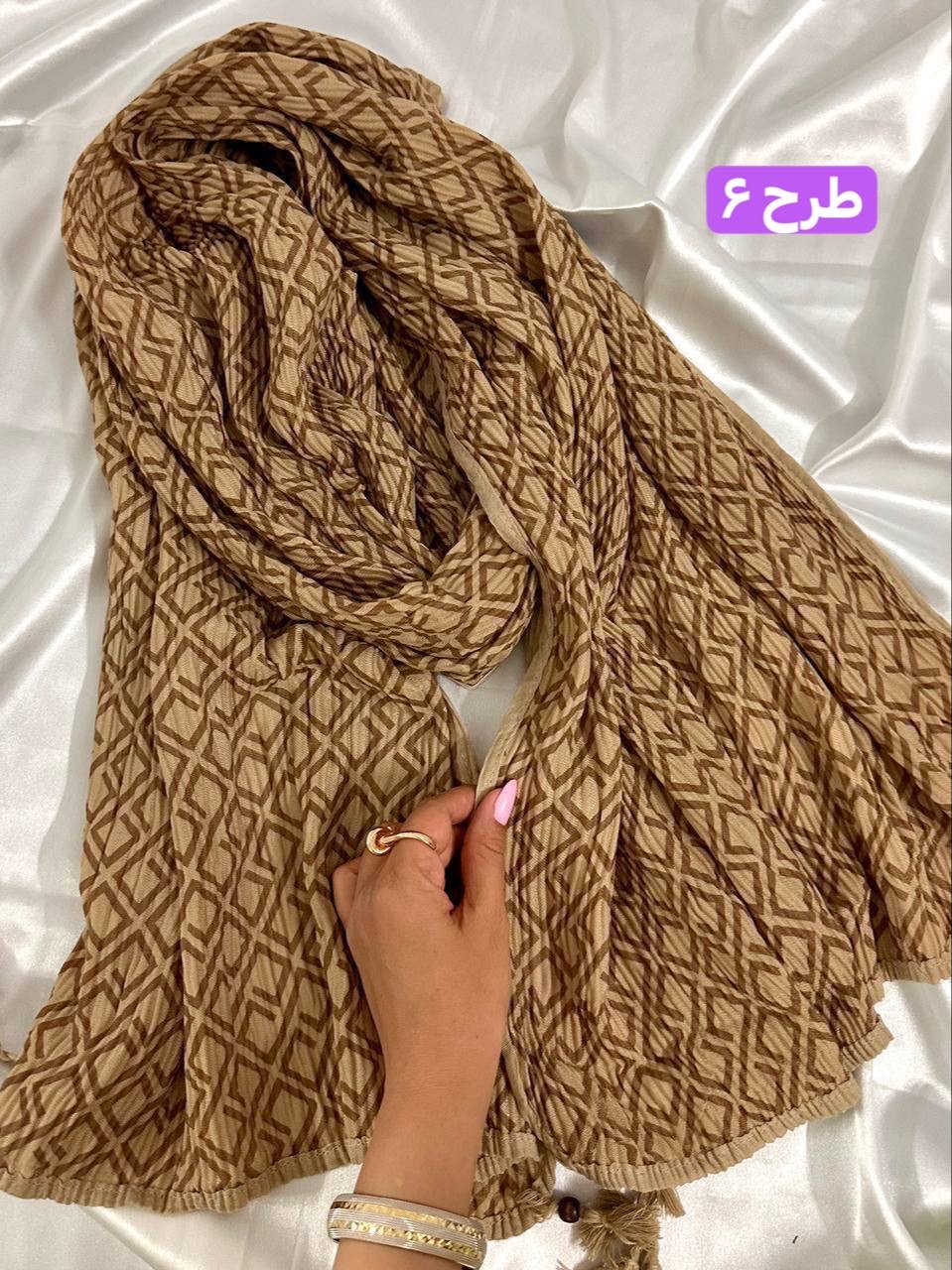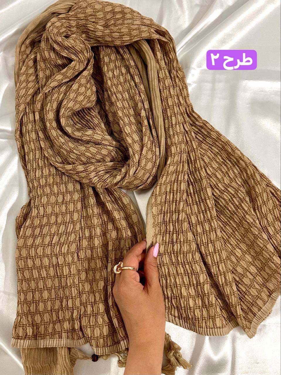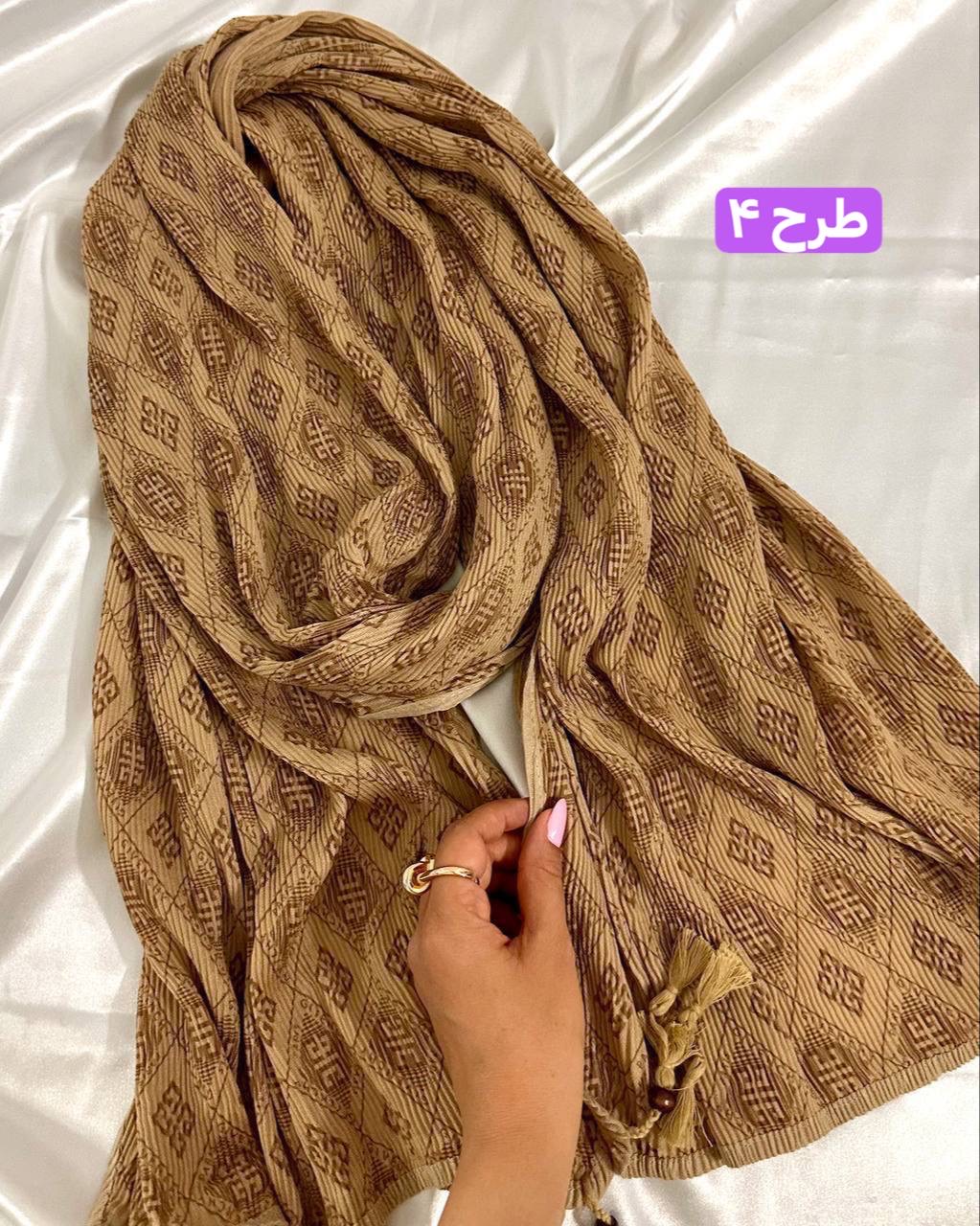 شال برشکا دورو طرحدار کرمی کالکشن عید