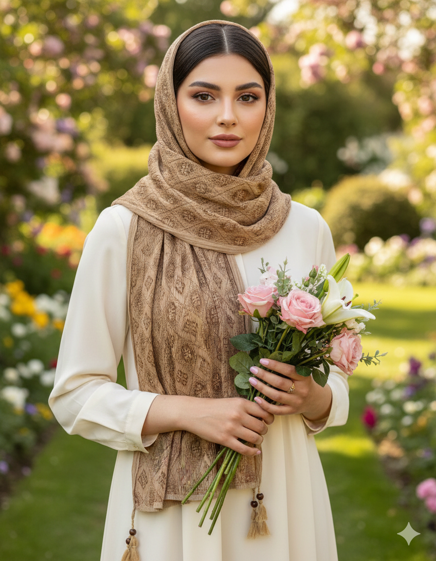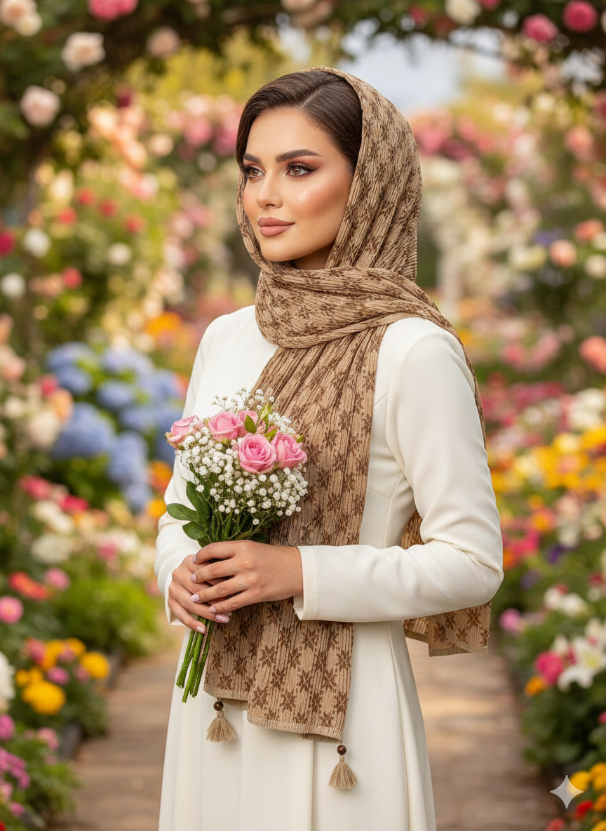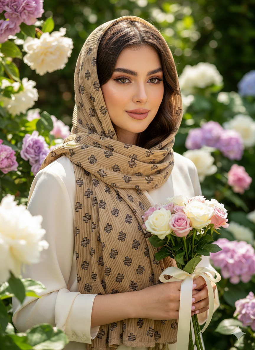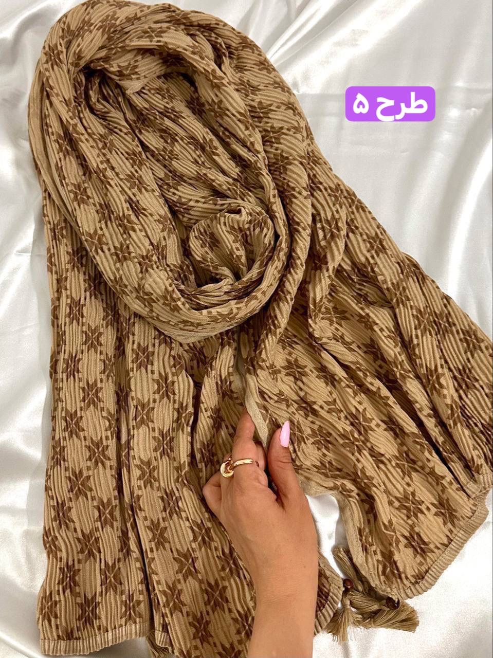 شال برشکا دورو طرحدار کرمی کالکشن عید
