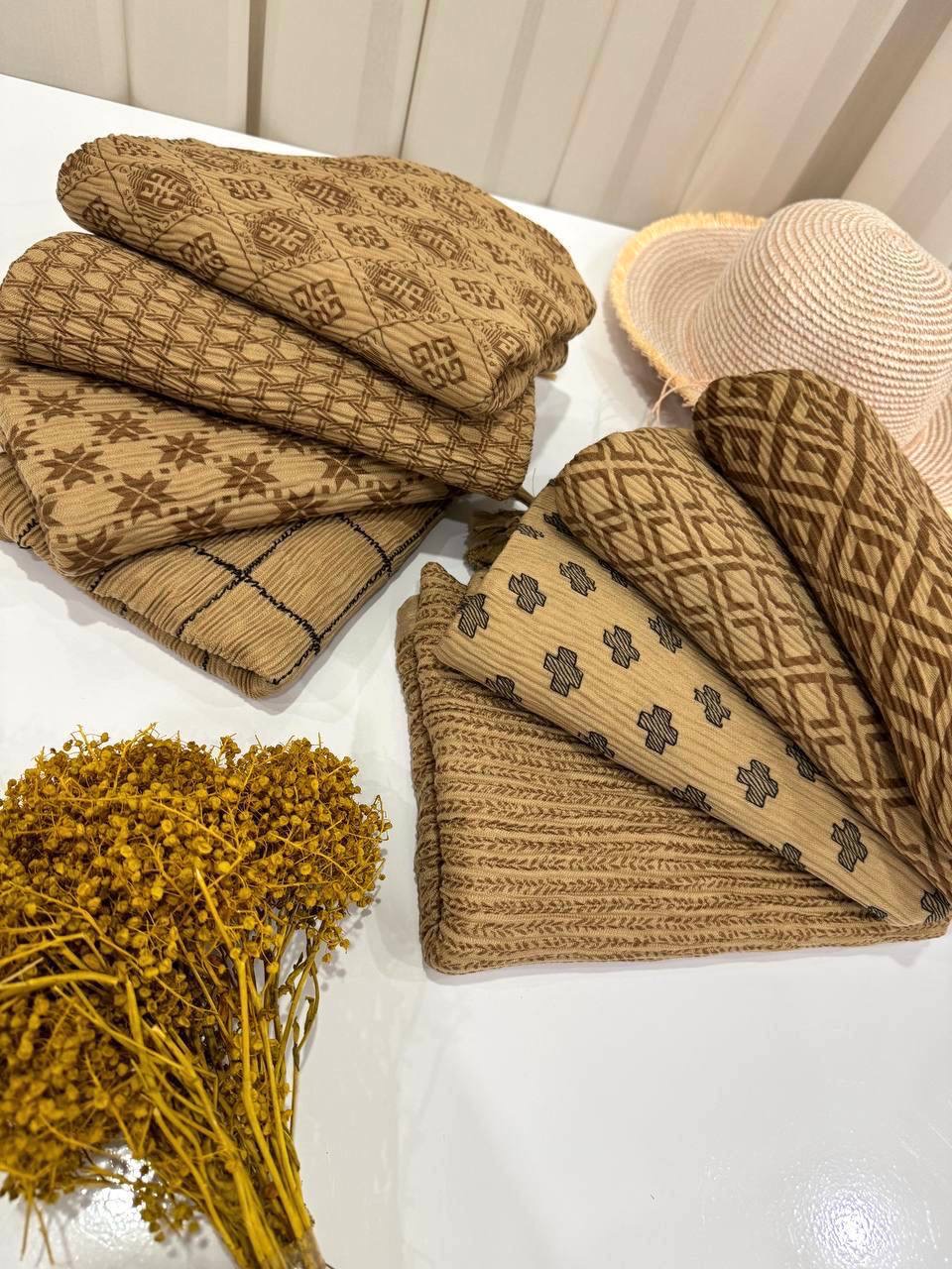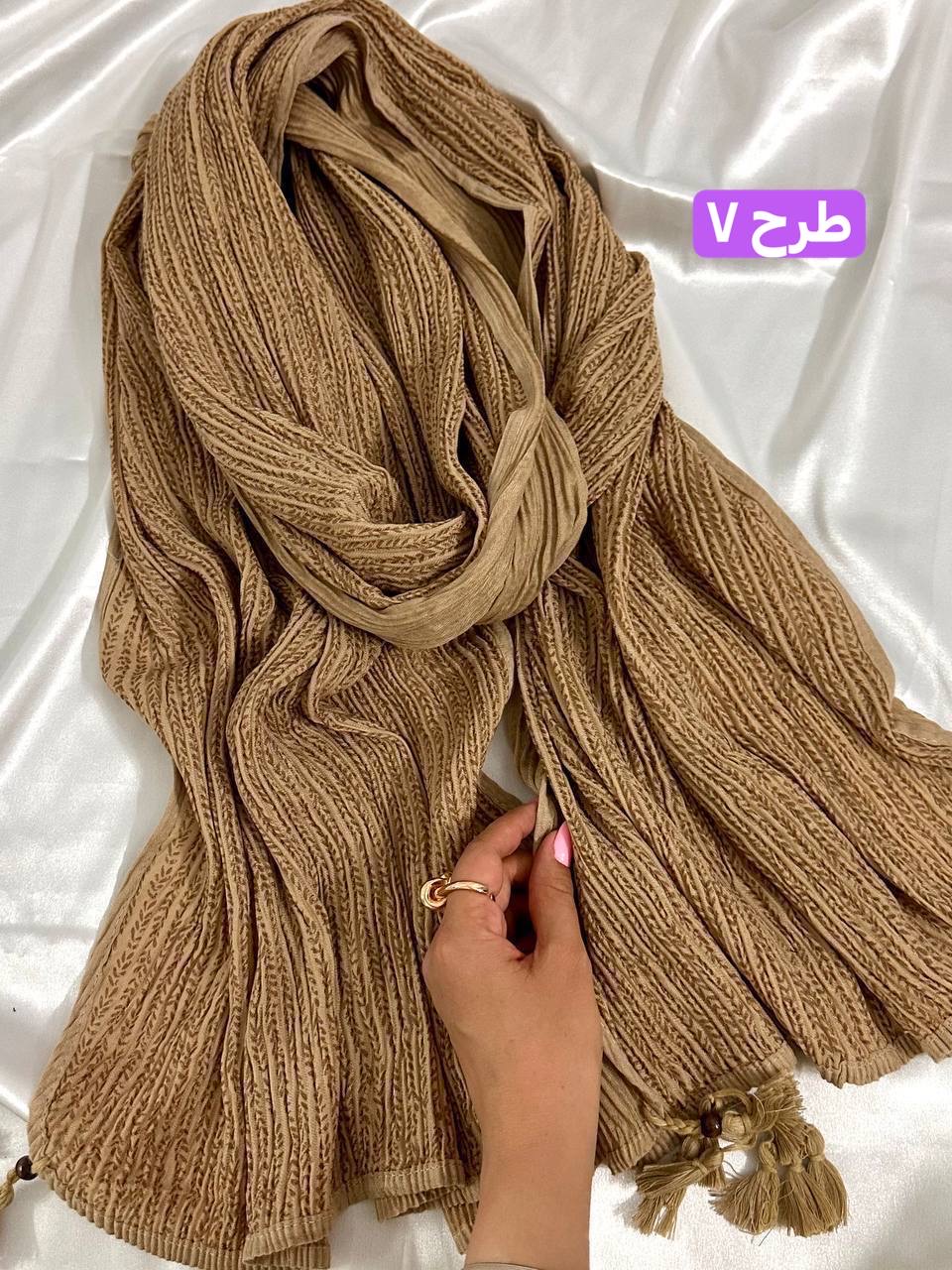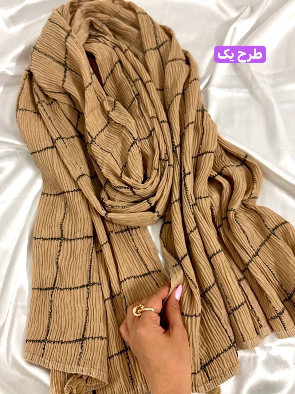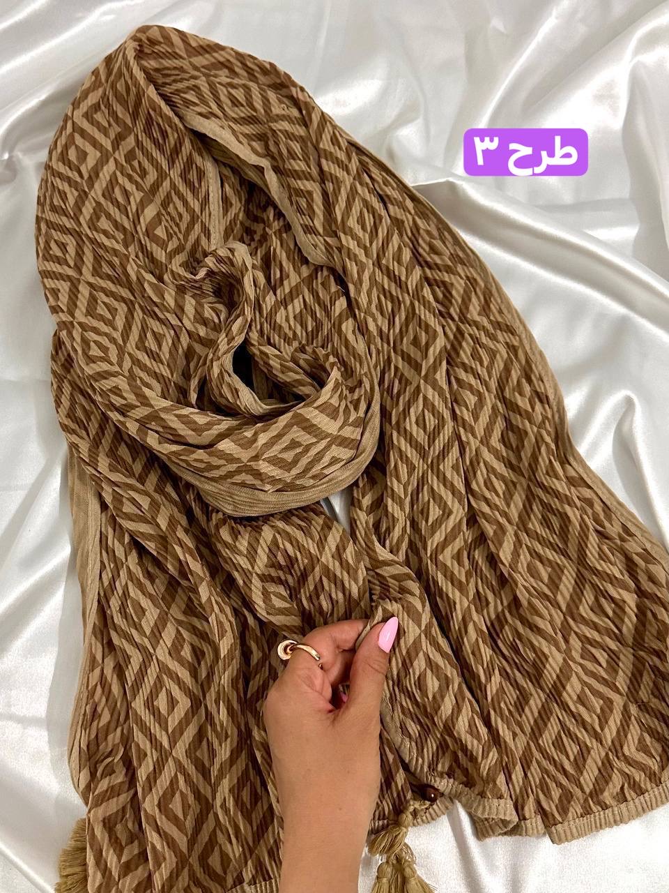 شال برشکا دورو طرحدار کرمی کالکشن عید